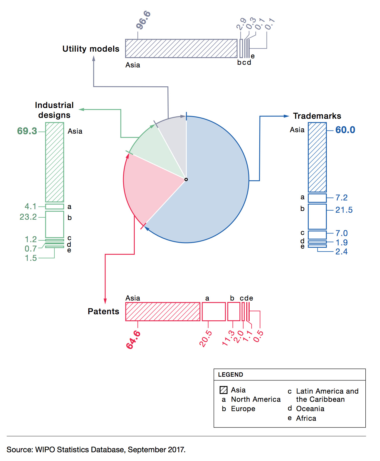 IP filing activity by region %