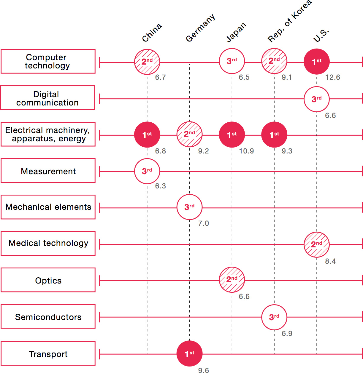 China is the leading country worldwide in intellectual property. Previously however, USA was the leading country worldwide, however, the technological boom in China resulted in the number of patent applications in China increasing tenfold compared to the year 2004.